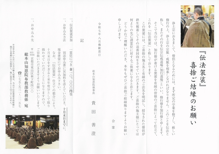 - 2025.10.01 知恩院「伝法袈裟」喜捨結縁のご案内